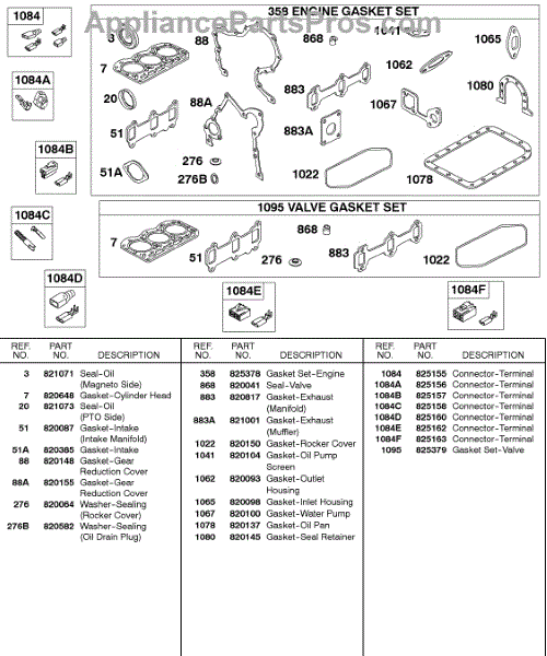 Parts for Briggs & Stratton 587447-0205-E2: Engine Gasket Set, Valve Gasket Set Parts