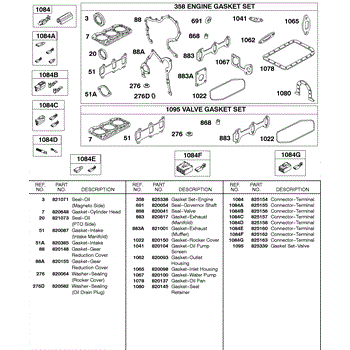 Parts for Briggs & Stratton 589447-0305-E2: Engine Gasket Set, Valve Gasket Set, Connectors Parts
