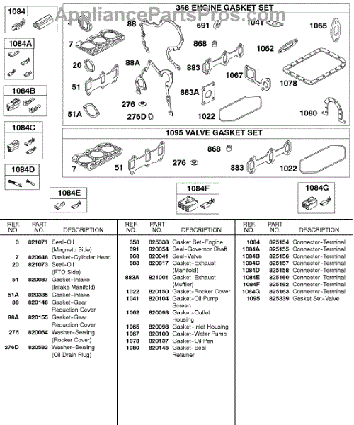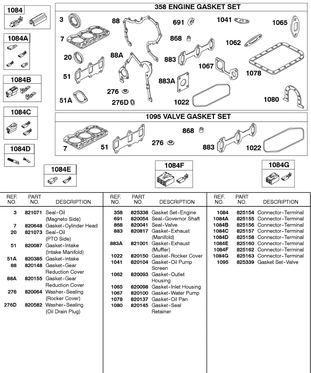 Parts for Briggs & Stratton 589447-0334-99: Engine Gasket Set, Valve Gasket Set, Connectors Parts