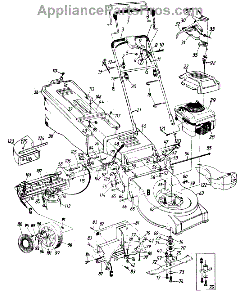 Parts for Mtd 124-478C129 / 1994: Engine, Grass Catcher, Mulching Kit And Chute Deflector Parts