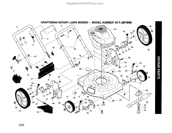 Parts for Craftsman 917387690: Engine / Handle / Housing / Wheels Parts