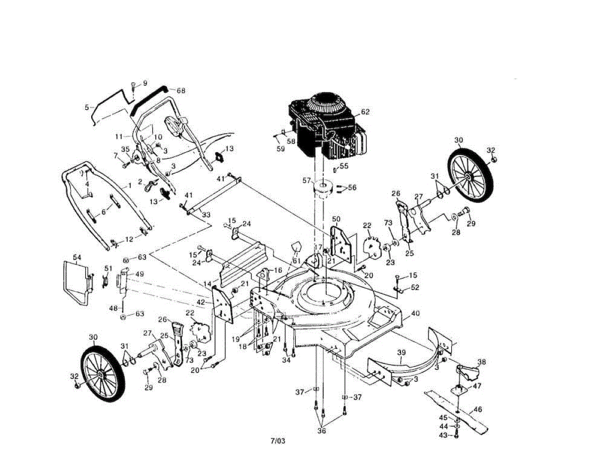 Upper handle assembly for walk behind lawn mowers. Replaces cracked, broken, or worn comfort handles. Essential structural component for operator control.