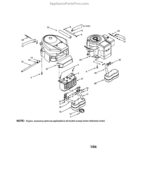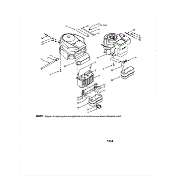 Exhaust muffler for lawn mowers and tractors. Reduces engine noise during operation. Replace if cracked, rusted, or excessively loud from wear or damage.