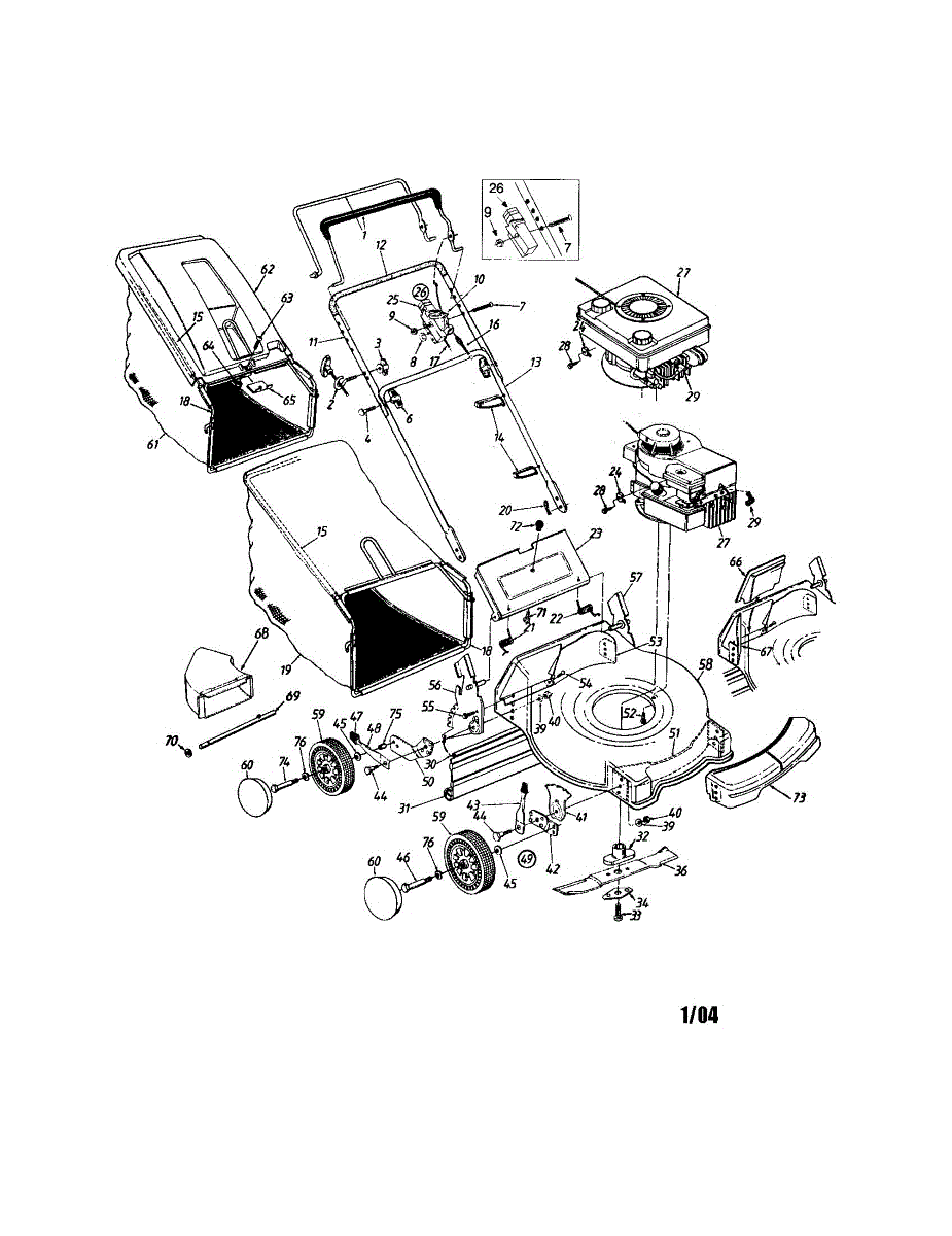 Replacement wheel assembly for walk-behind mowers and lawn equipment. Installs on axle to restore mobility. Order when wheel is cracked, broken, or worn.