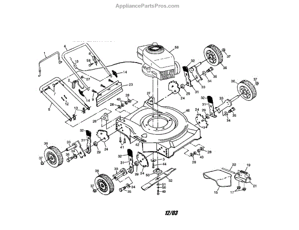 Parts for Craftsman 917386990: Engine / Housing / Handle / Wheels Parts
