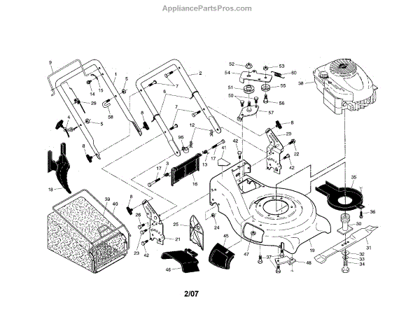 Parts for Craftsman 917389962: Engine / Housing / Handle / Grassbag Parts