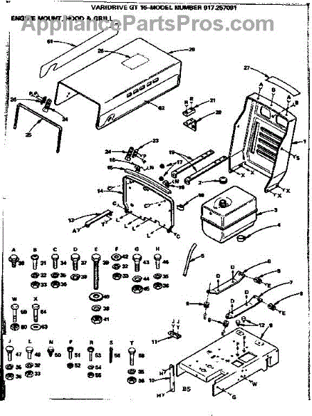 Parts for Craftsman 917257091: Engine Mount, Hood & Grill Parts