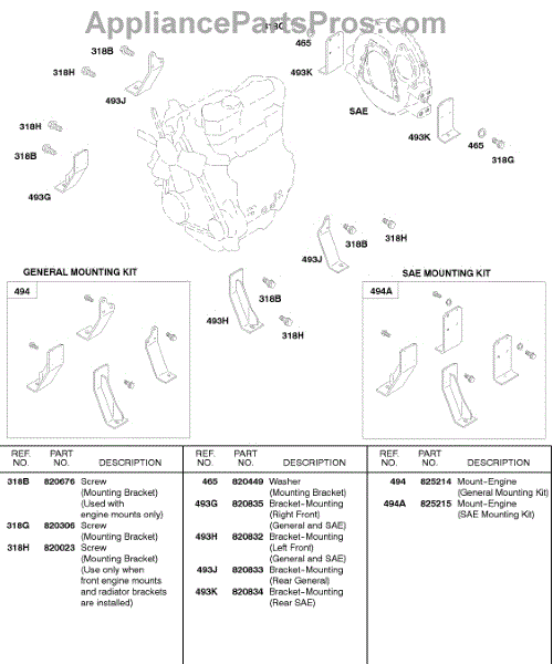 Parts for Briggs & Stratton 584447-0305-E2: Engine Mounting Kits Parts
