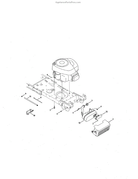 Muffler for front-engine lawn tractors and riding mowers. Replaces cracked, rusted, or damaged mufflers. Mounts to the engine exhaust port.