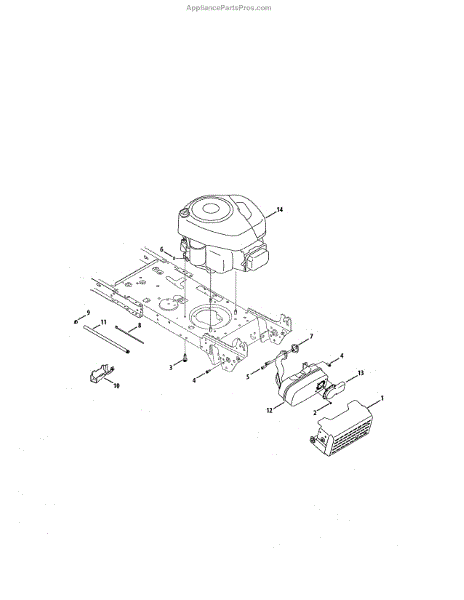Muffler for front-engine lawn tractors and riding mowers. Replaces cracked, rusted, or damaged mufflers. Mounts to the engine exhaust port.