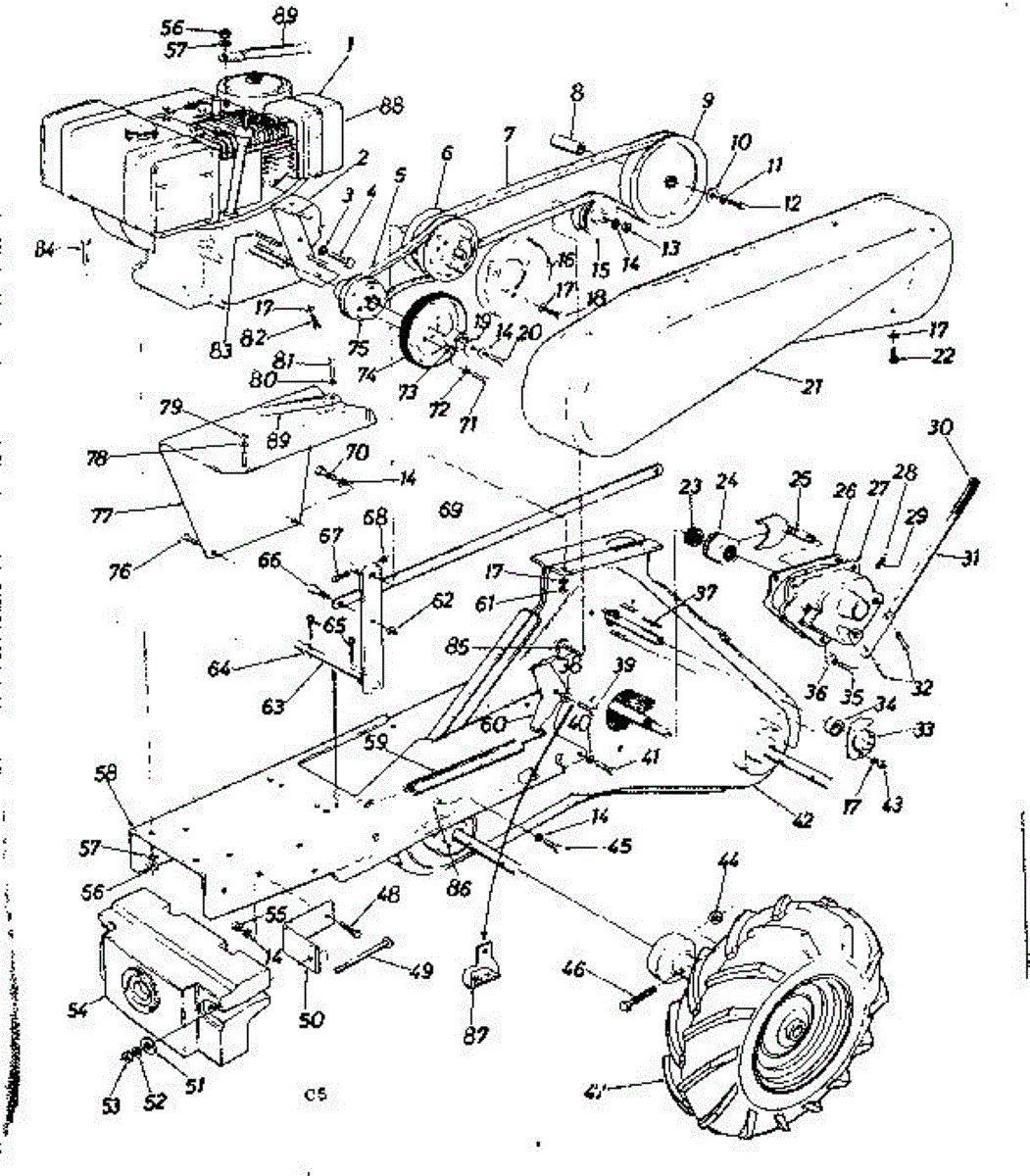 Tire and rim assembly for rear-tine tillers. Replaces cracked, worn, or damaged tires. Mounts to axle for improved traction and maneuverability.