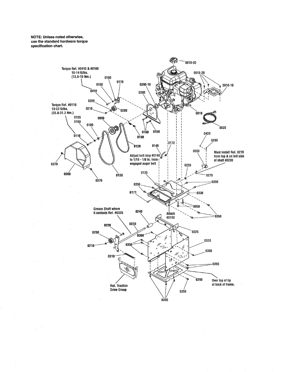 Connects the drive motor to the auger to rotate the blade and move snow. Replace if stretched, slipping, or causing poor snow pickup. Verify fit with your model.