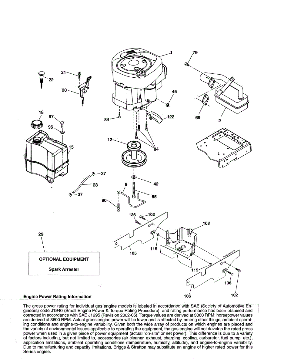 Replacement fuel tank for front-engine lawn tractors and riding mowers. Installs to store fuel. Replace if cracked, damaged, or leaking.