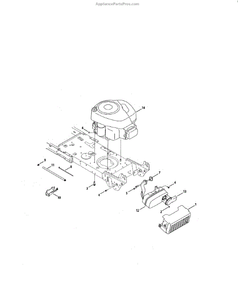Muffler for front-engine lawn tractors and riding mowers. Replaces cracked, rusted, or damaged mufflers. Mounts to the engine exhaust port.