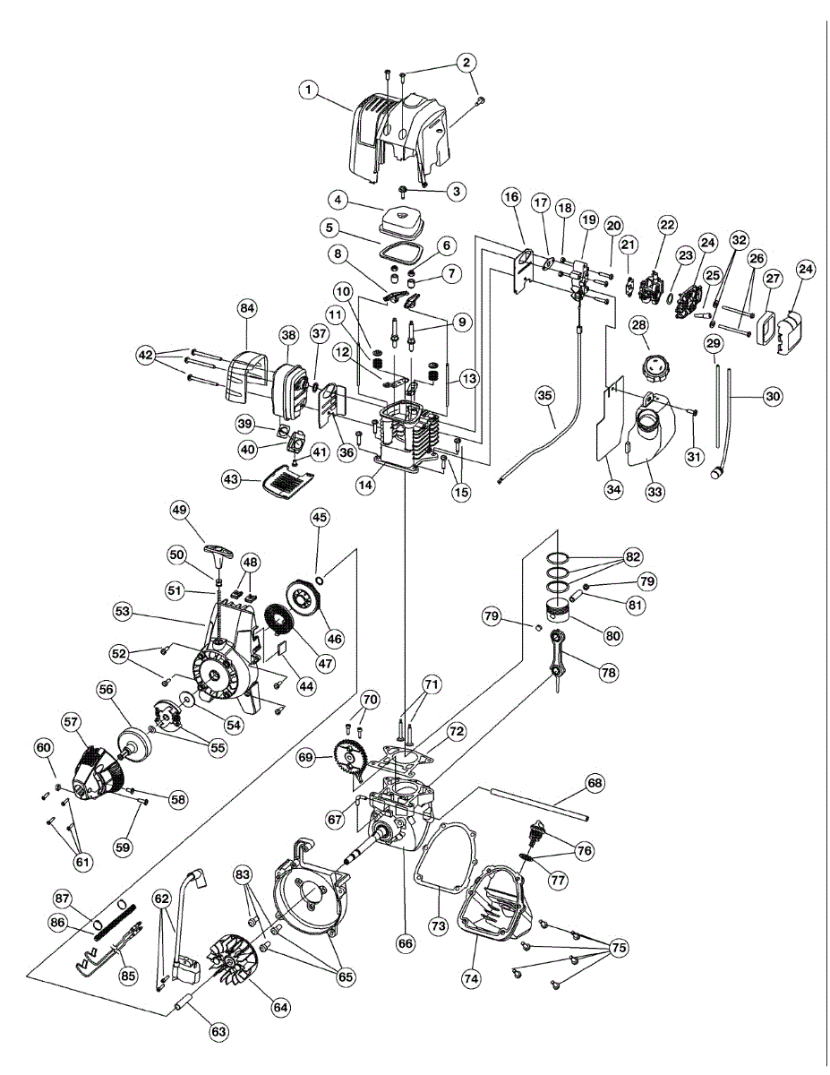 Breather housing assembly for line trimmers and tillers. Replaces cracked, broken, or damaged housings. Installs on engine to maintain proper ventilation.