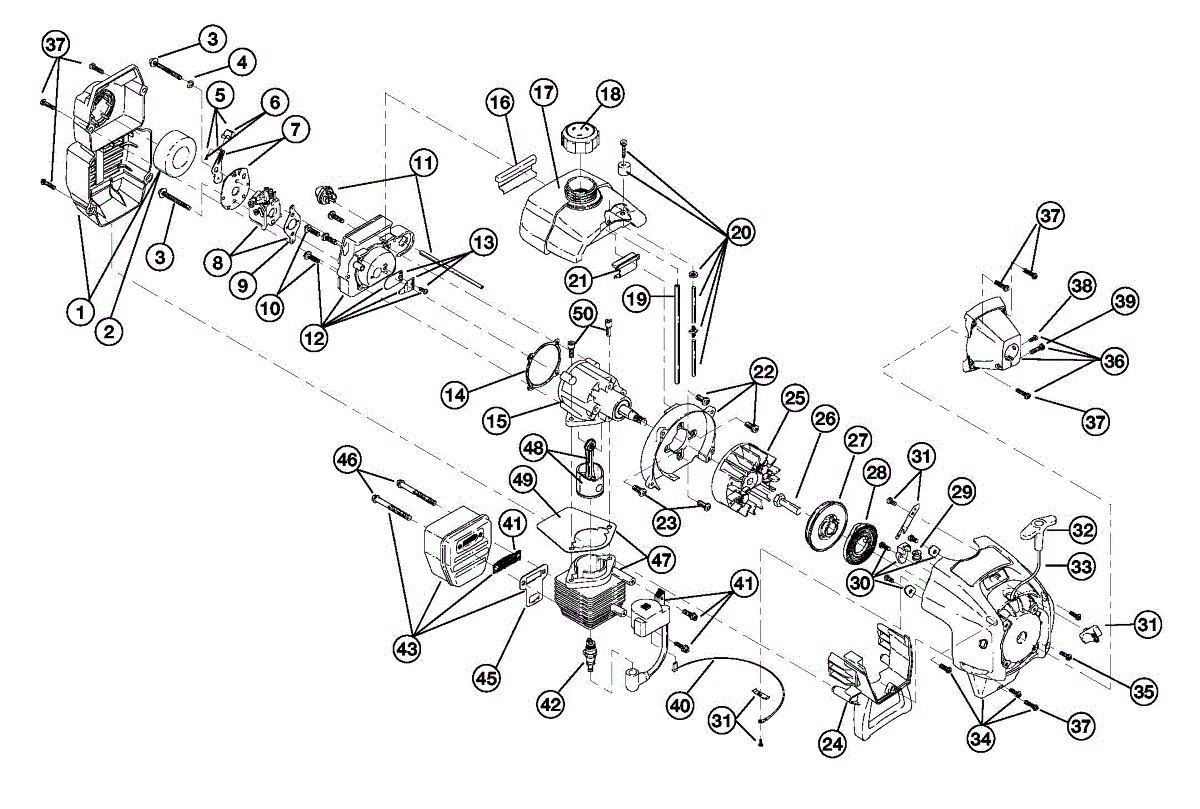 Carburetor rebuild kit for gas-powered outdoor equipment. Replace when engine runs rough, won't start, or idles poorly. Verify model compatibility.