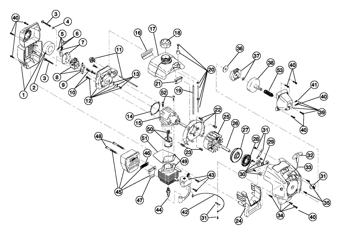 If your trimmer won't start, runs rough, or stalls frequently, a faulty carburetor may be the cause. This carburetor assembly restores proper fuel flow.
