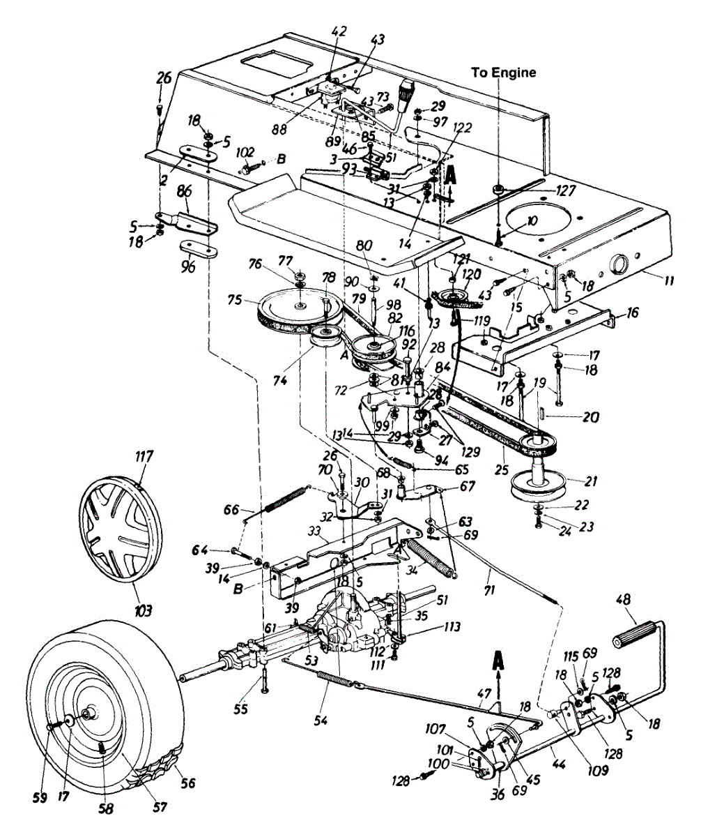 Parts for Ranch King 132-679G205 / 1992: Engine Pulley And Lower Frame Assembly Parts