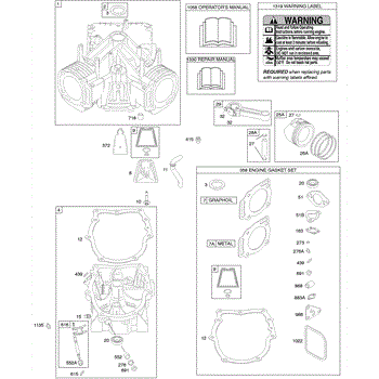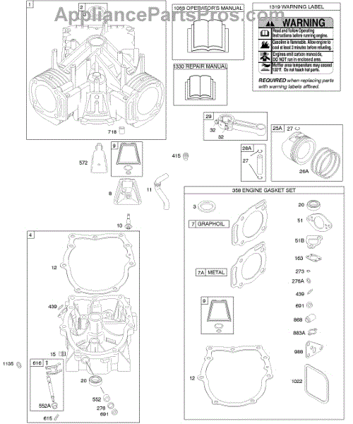 Parts for Briggs & Stratton 35777A-0113-E2: Engine Sump, Cylinder, Gasket Set - Engine, Piston, Rings, Connecting Rod Parts