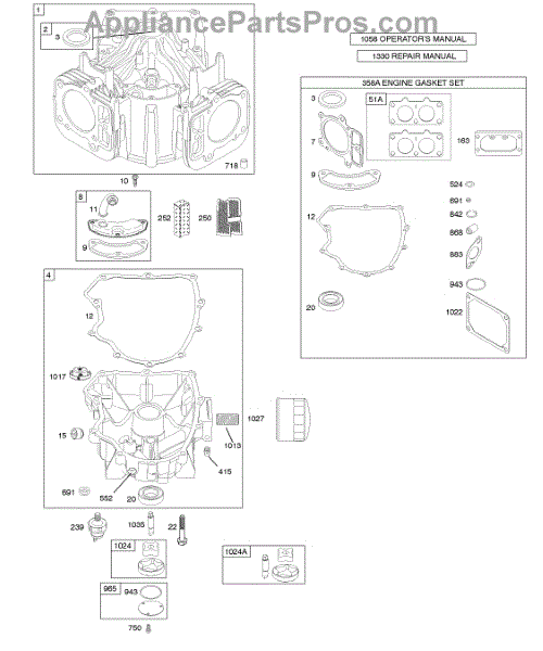 Parts for Briggs & Stratton 44H777-0121-E1: Engine Sump, Gasket Set-Engine Parts