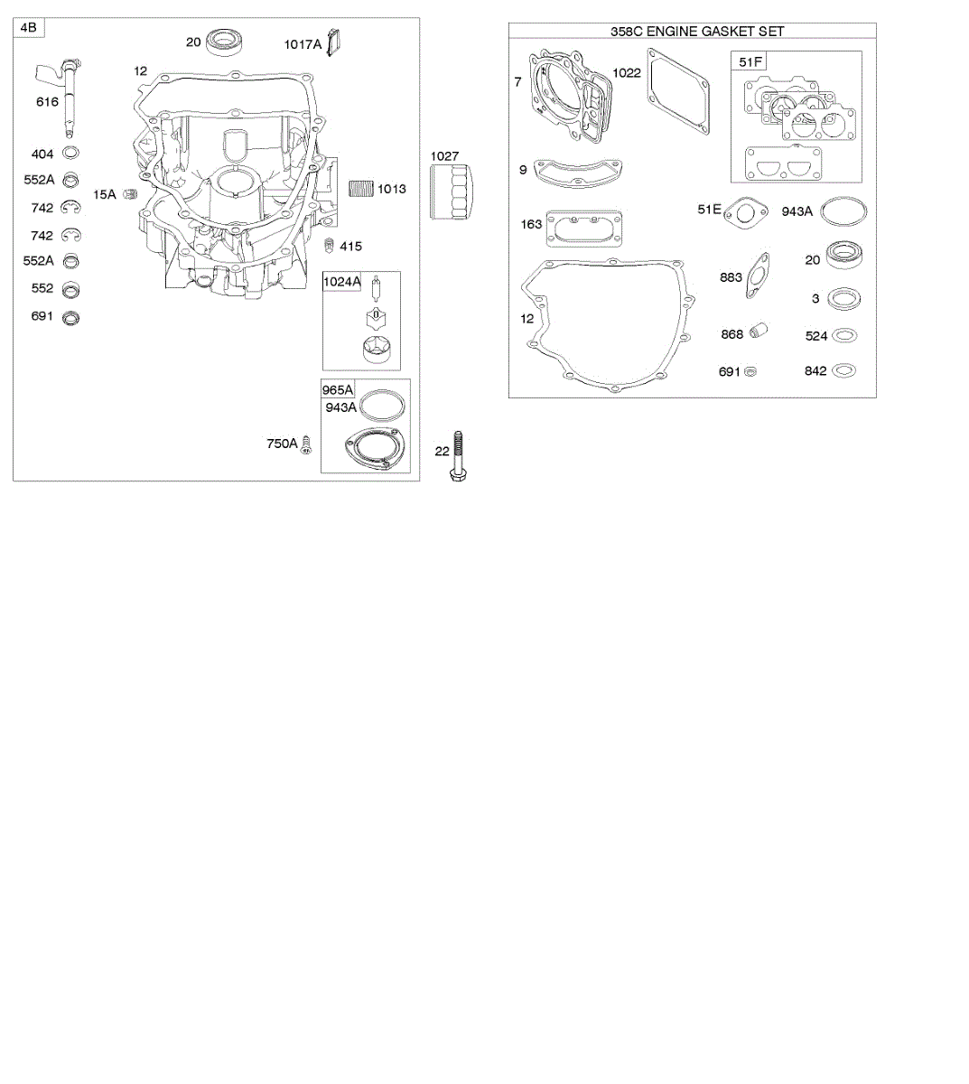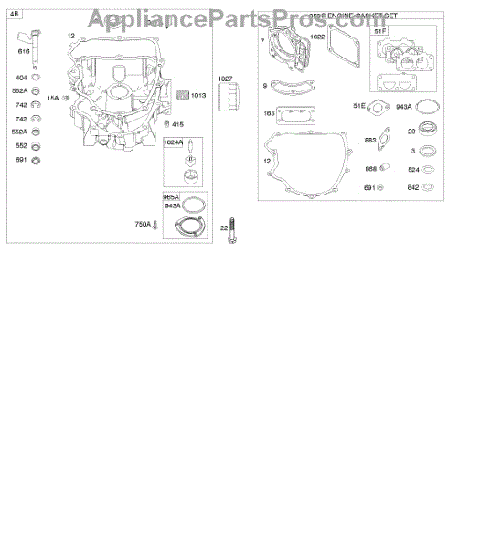 Parts for Briggs & Stratton 44P977-0113-G5: Engine Sump, Gasket Set-Engine Parts