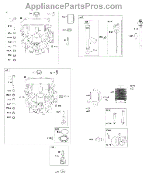 Parts for Briggs & Stratton 44M977-0938-G5: Engine Sump, Lubrication Parts