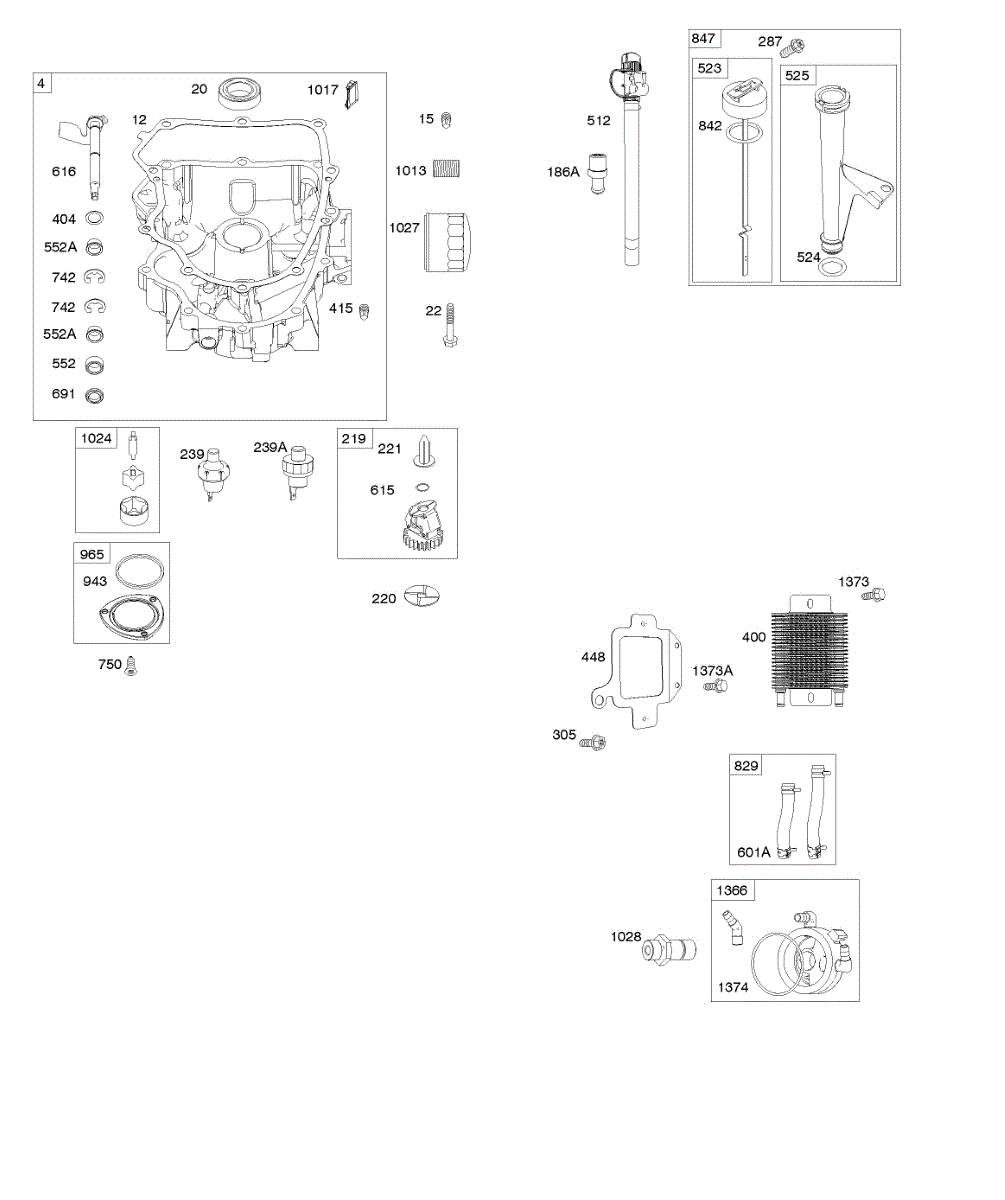 Parts for Briggs & Stratton 44T877-0004-G1: Engine Sump, Lubrication, Oil Cooler Parts