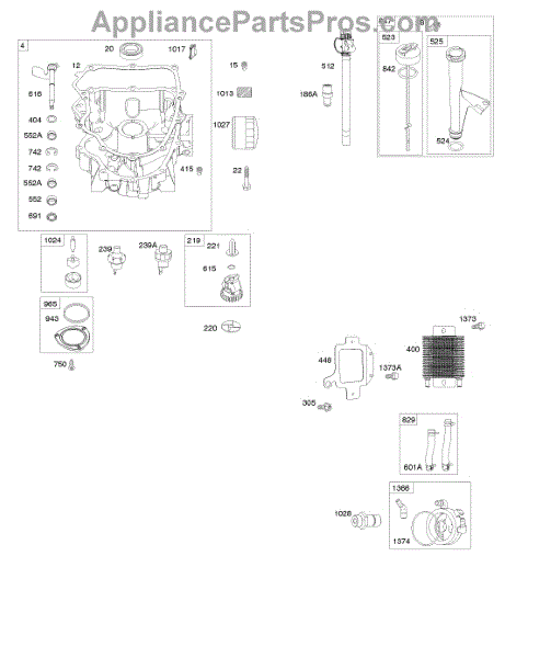 Parts for Briggs & Stratton 44T877-0005-G1: Engine Sump, Lubrication, Oil Cooler Parts
