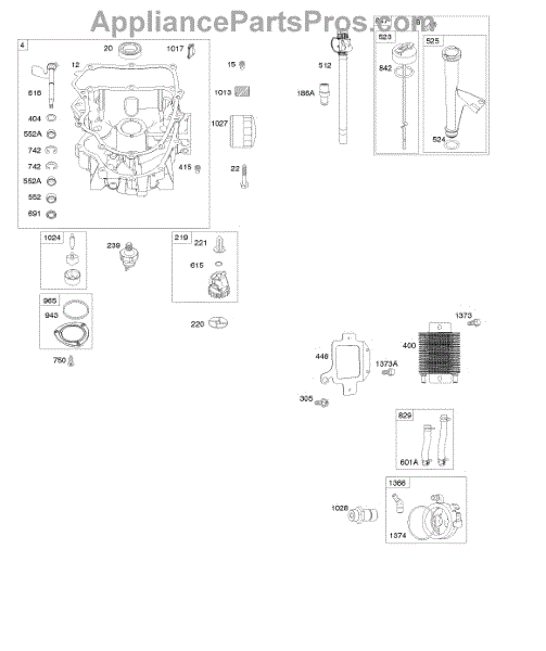 Parts for Briggs & Stratton 44T977-0015-G1: Engine Sump, Lubrication, Oil Cooler Parts