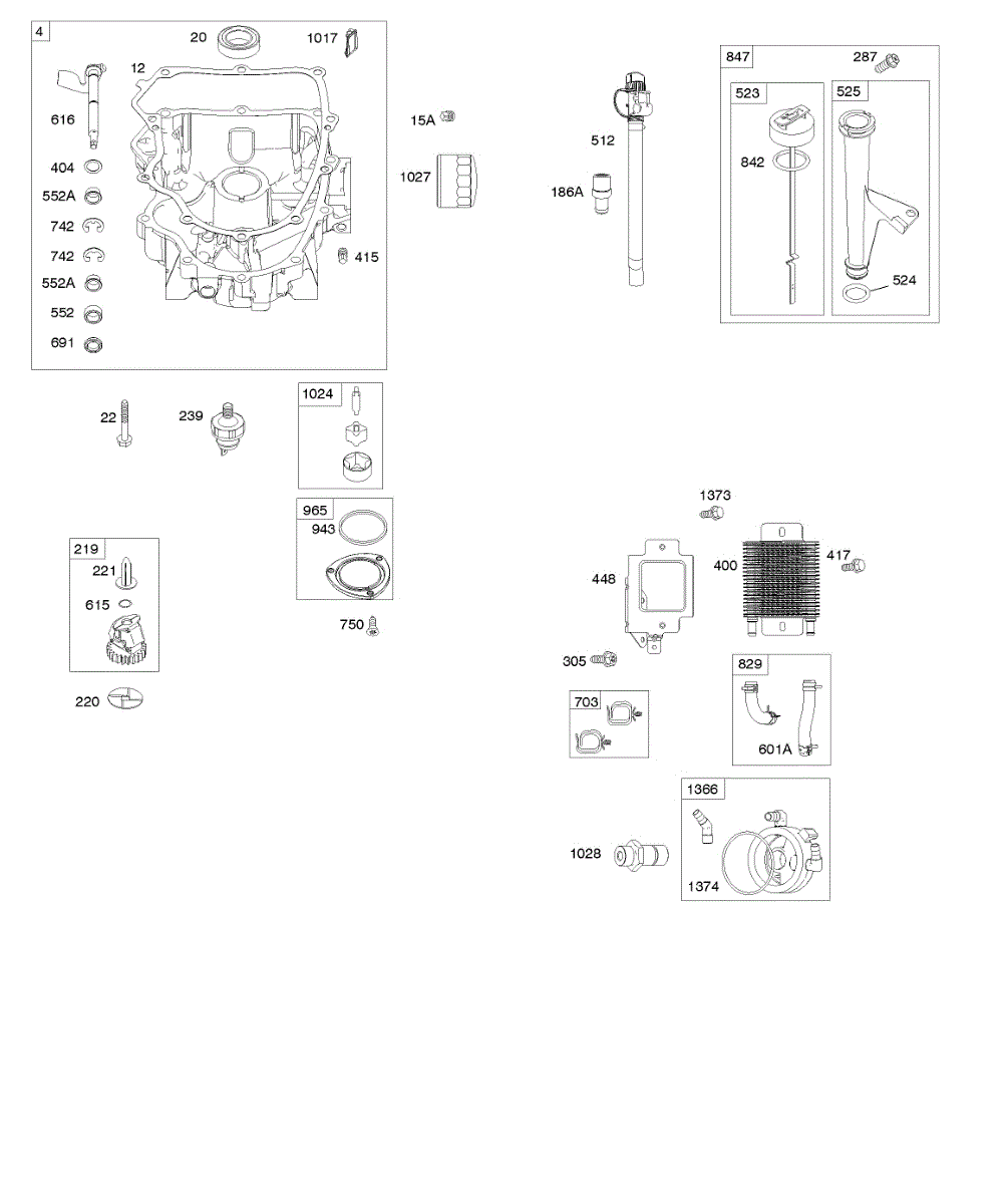 Parts for Briggs & Stratton 49M777-0111-G5: Engine Sump, Lubrication, Oil Cooler Parts