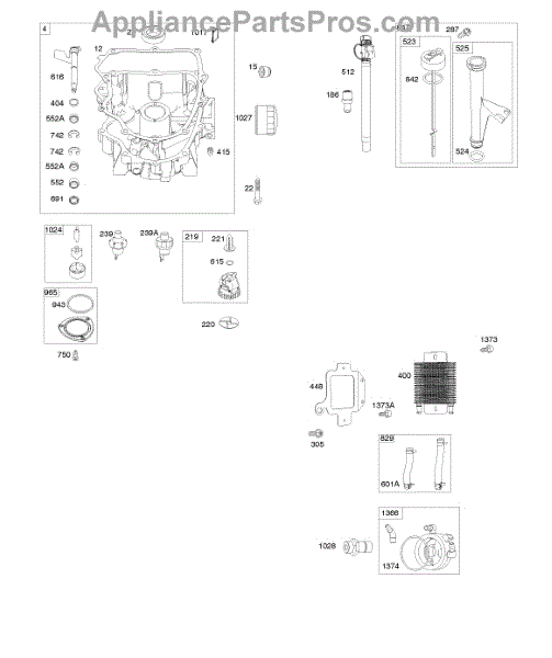 Parts for Briggs & Stratton 49T877-0006-G1: Engine Sump, Lubrication, Oil Cooler Parts