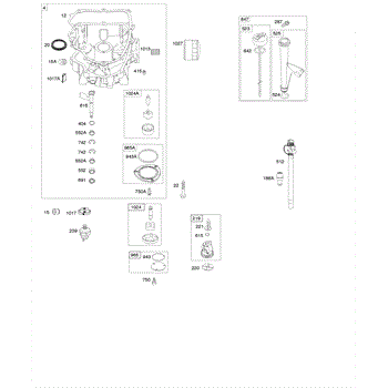Parts for Briggs & Stratton 405577-0118-B1: Engine Sump, Oil Pump, Dipstick / Tube Assembly Parts