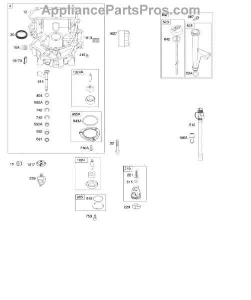 Parts for Briggs & Stratton 405577-3280-B1: Engine Sump, Oil Pump, Dipstick / Tube Assembly Parts