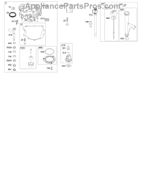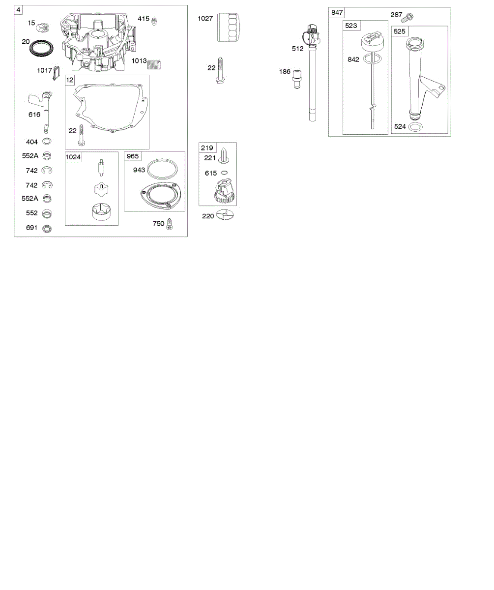 Parts for Briggs & Stratton 40N777-0001-B1: Engine Sump, Oil Pump, Dipstick / Tube Assembly Parts