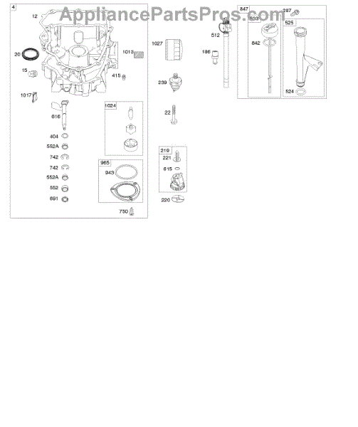 Parts for Briggs & Stratton 40R577-0006-H1: Engine Sump, Oil Pump, Dipstick / Tube Assembly Parts