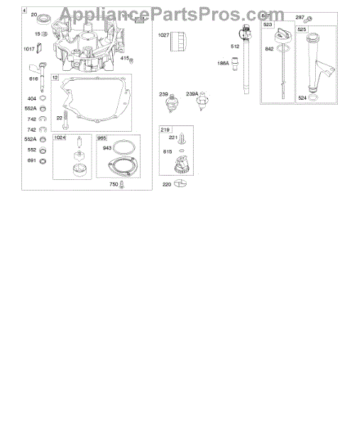 Parts for Briggs & Stratton 40R777-0014-B1: Engine Sump, Oil Pump, Dipstick / Tube Assembly Parts