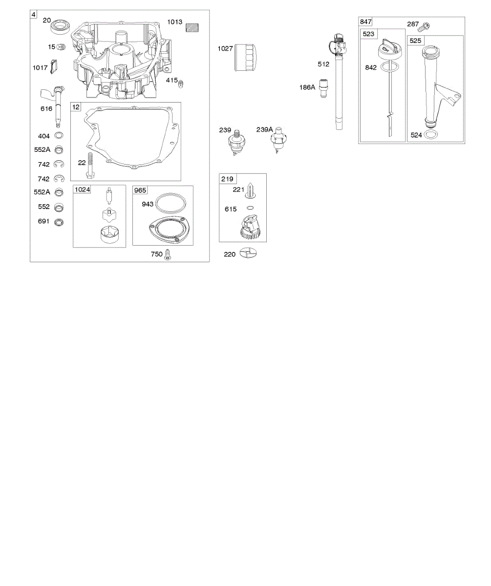 Parts for Briggs & Stratton 40R777-0019-B1: Engine Sump, Oil Pump, Dipstick / Tube Assembly Parts