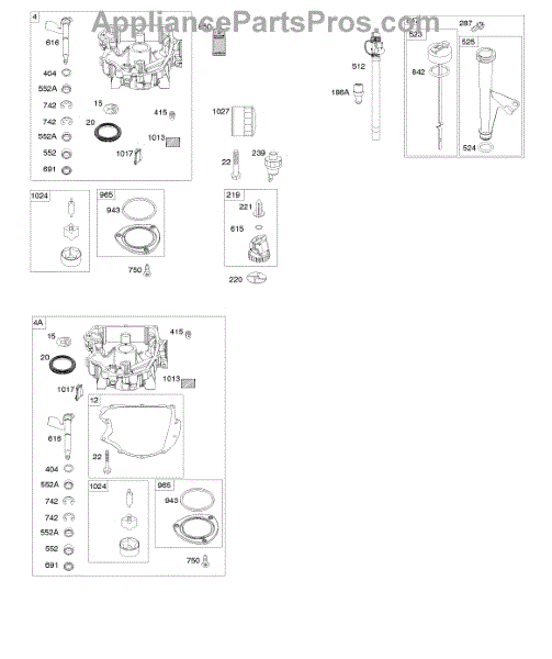 Parts for Briggs & Stratton 40S877-0009-G1: Engine Sump, Oil Pump, Dipstick / Tube Assembly Parts
