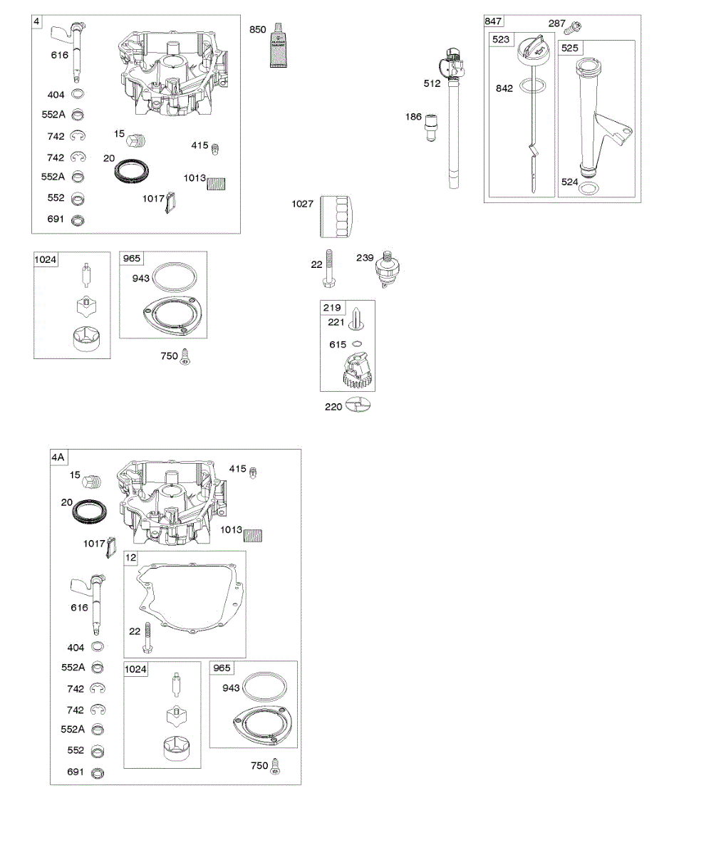 Parts for Briggs & Stratton 44N677-0006-G1: Engine Sump, Oil Pump, Dipstick / Tube Assembly Parts