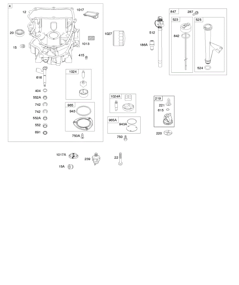Parts for Briggs & Stratton 44P777-0288-B1: Engine Sump, Oil Pump, Dipstick / Tube Assembly Parts