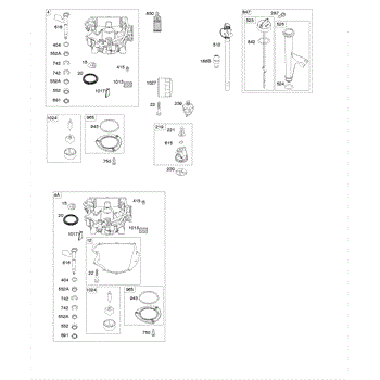 Parts for Briggs & Stratton 44R677-0001-G1: Engine Sump, Oil Pump, Dipstick / Tube Assembly Parts