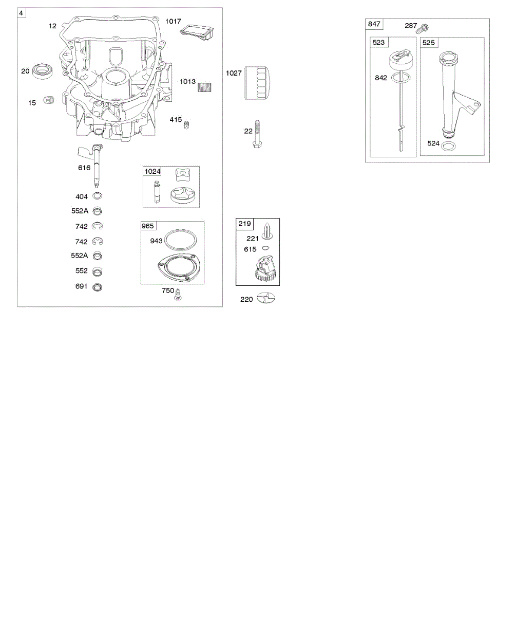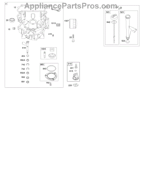 Parts for Briggs & Stratton 44R777-0002-G1: Engine Sump, Oil Pump, Dipstick / Tube Assembly Parts
