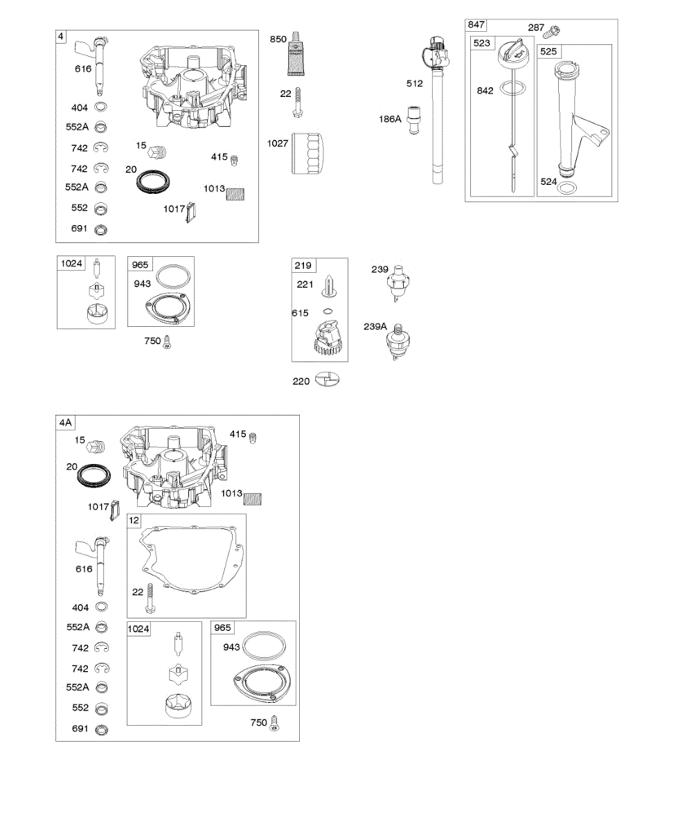 Parts for Briggs & Stratton 44S677-0001-G1: Engine Sump, Oil Pump, Dipstick / Tube Assembly Parts