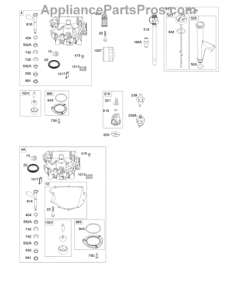 Parts for Briggs & Stratton 44S677-0009-G1: Engine Sump, Oil Pump, Dipstick / Tube Assembly Parts