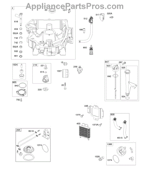Parts for Briggs & Stratton 49R977-0001-G1: Engine Sump, Oil Cooler, Dipstick / Tube Assembly Parts