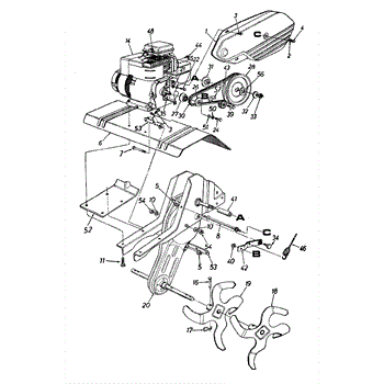 Drive pulley for front-tine tillers. Mounts to the engine or transmission to transfer power. Replace if cracked, worn, or wobbling affects operation.