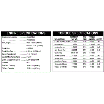 Parts for Mcculloch 41AY06AR077: Engine & Torque Specifications Parts