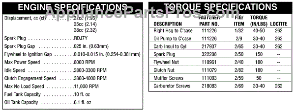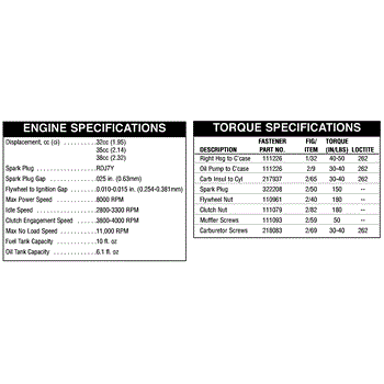 Parts for Mcculloch 41AY88AQ077: Engine & Torque Specifications Parts