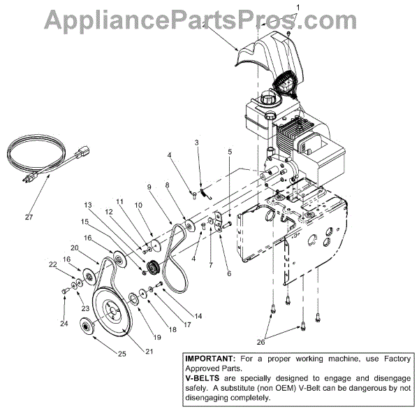 This part is a replacement auger pulley. This is a genuine OEM part made by MTD and has been sourced directly from the manufacturer. This part's intended use is to replace a broken or defective auger pulley in snow blowers.The auger pulley rotates the snow blower's auger blades by connecting the auger gearbox to the equipment's drive belt. This part is critical for proper functionality and thus will require replacement if faulty. When working on or near an engine, it's important to make sure the equipment is powered off and completely cooled down before starting any repairs. For more accurate information on how and where to install this auger pulley, reference the appropriate owner's manual and specific equipment diagrams.This is an authentic OEM replacement part made of high-quality materials. This auger pulley can be used with different models of snow blowers that have been manufactured by MTD, Craftsman, Ryobi, and other brands. Part sold individually.