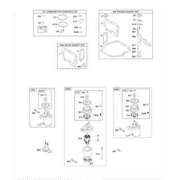 Parts for Briggs & Stratton 124T02-0177-01: Engine, Valve, & Carburetor Kits, Rewind Starter Parts